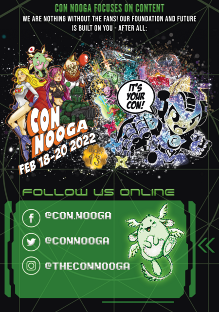 2021 has not been the year for Cons but our staff and team are firing on all cylinders as we ramp up for the biggest Con Nooga ever in 2022!!